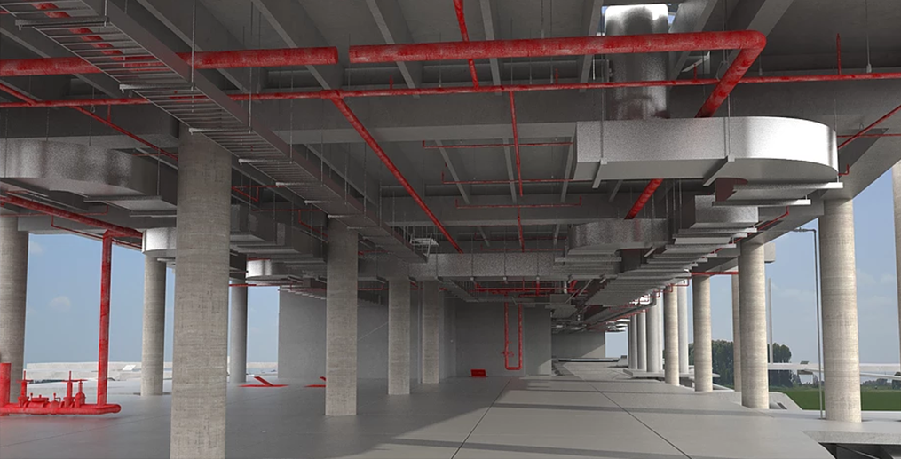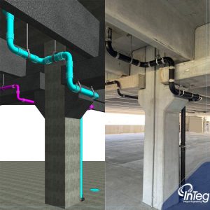 Intelligent Clash Detection of different elements. This allows to define the most efficient route before installation, reducing rework on the job site.